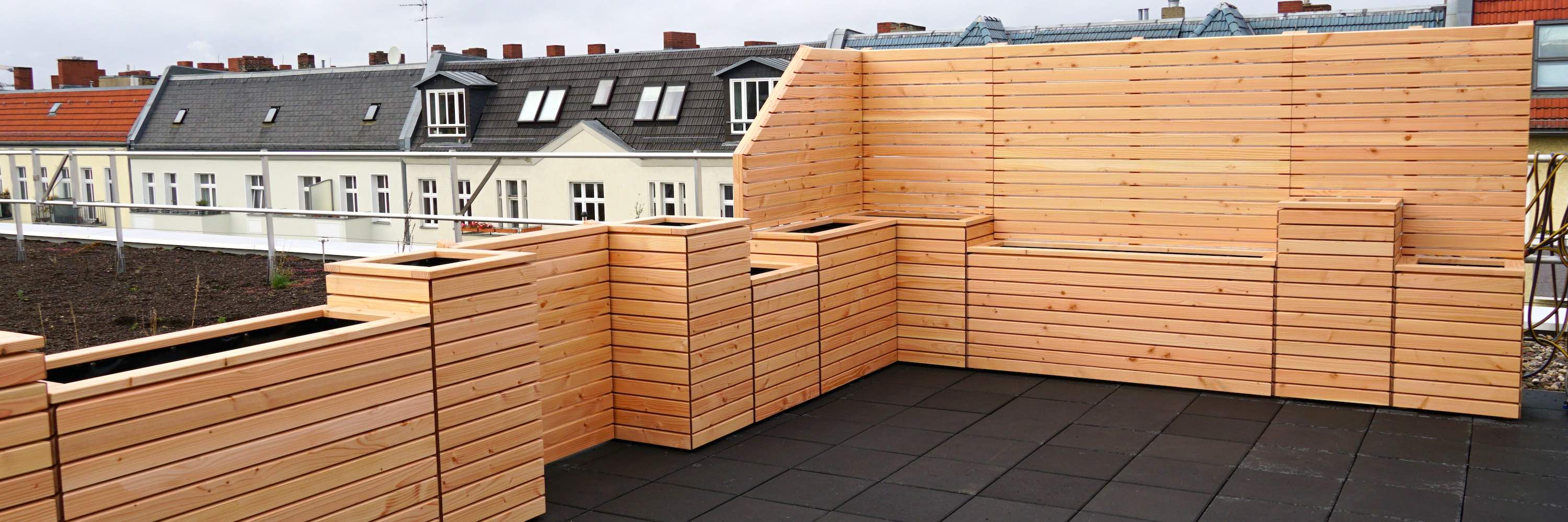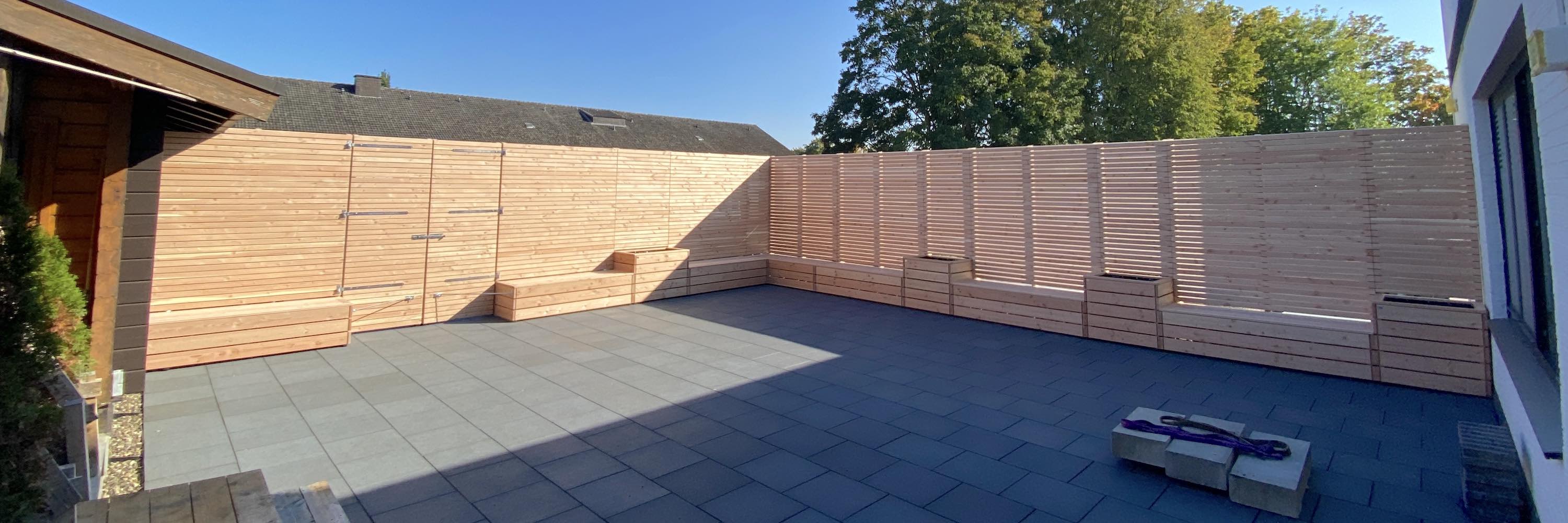 Wir helfen Ihnen gerne mit unserer Erfahrung, unserem handwerklichen Know-how und unserer Leidenschaft für gute Lösungen weiter. Egal ob Loungemöbel, Pflanzkästen als Raumteiler, Terrassenmöblierung, Sichtschutz mit Sitzbänken, Mülltonnenboxen, Kinderwagen-Garagen oder schalldämmende Wärmepumpenverkleidungen aus Holz – wir haben für fast alles eine Idee.