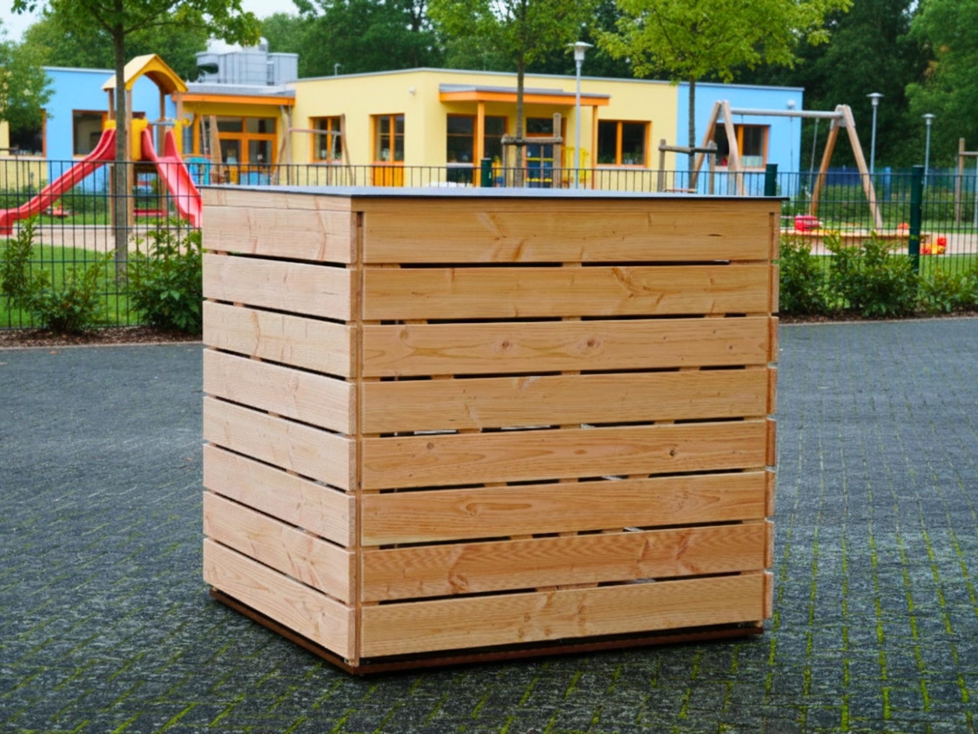 Diese 2er Kinderwagenbox in Natur mit HPL-Dach und integriertem Boden bietet eine praktische Lösung zur geschützten Aufbewahrung im Außenbereich. Sie eignet sich ideal für Laufräder, Buggys, Gartenutensilien, Spielgeräte oder saisonales Zubehör, das sauber, organisiert und vor direkter Witterungseinwirkung geschützt untergebracht werden soll.