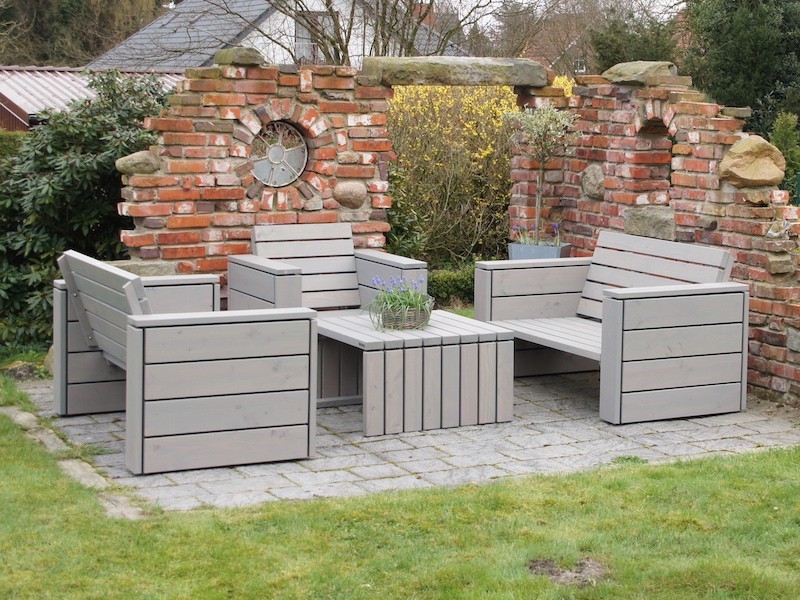 Loungemöbel aus Douglasie sind besonders pflegeleicht. Staub und Schmutz