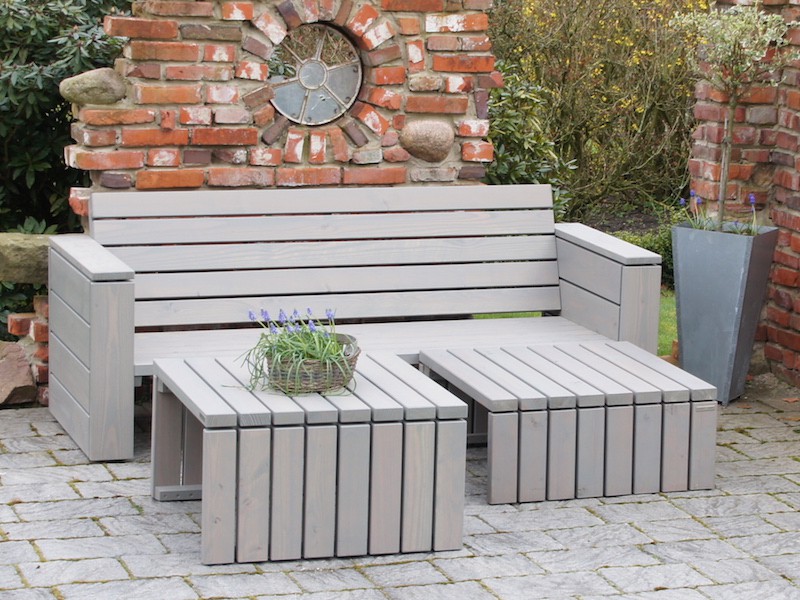 - Die Grau Geölte Oberfläche wirkt wie ein dezenter Vorvergrauungs-Anstrich, der den natürlichen Alterungsprozess der Douglasie stilvoll vorwegnimmt. In Verbindung mit den Polstern in Anthrazit entsteht ein kraftvoller, moderner Kontrast, der besonders auf Steinterrassen oder in geradlinigen Gärten seine volle Wirkung entfaltet.