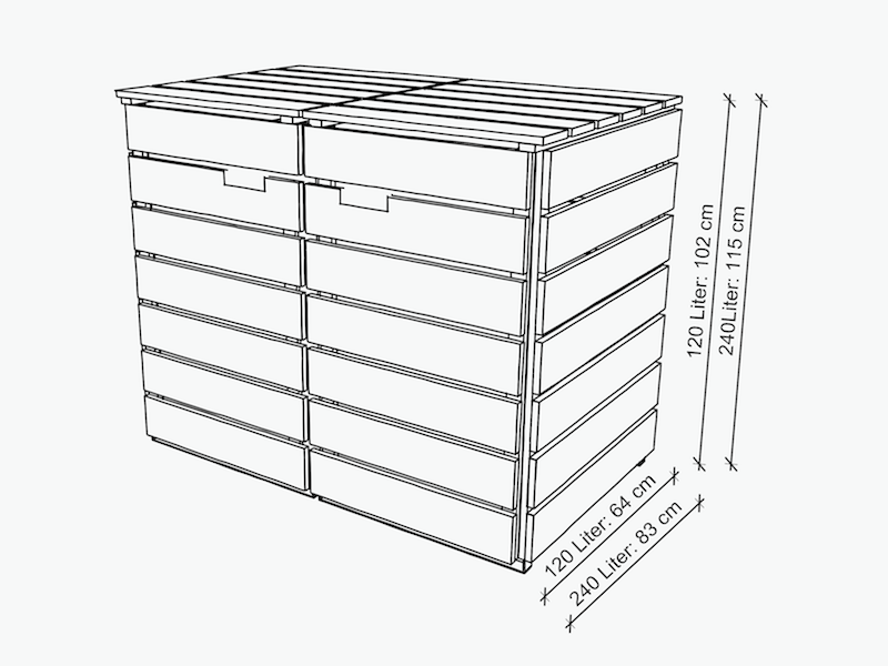 Falls Ihre Mülltonnen von den Standard-Größen abweichen, passen wir unsere Box gerne an. Teilen Sie uns die Maße Ihrer Mülltonne per Email mit oder rufen uns einfach an.